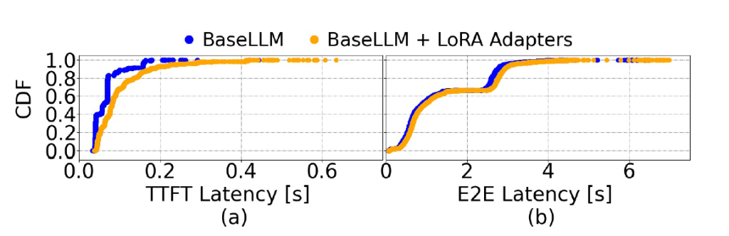 Adapter-based techniques, such as Low-Rank Adaptation (LoRA), have been explored to address this issue. These methods focus on fine-tuning only a small subset of a base model’s parameters for each task, reducing the resource requirements compared to fine-tuning the entire model. In LLM inference serving environments, this approach enables the decoupling of the base model parameters from the task-specific adapter parameters, allowing multiple fine-tuned models to share the same base. This sharing of the base model reduces memory consumption significantly, enabling the serving of potentially hundreds of LoRA-fine-tuned LLMs at a fraction of the memory cost.