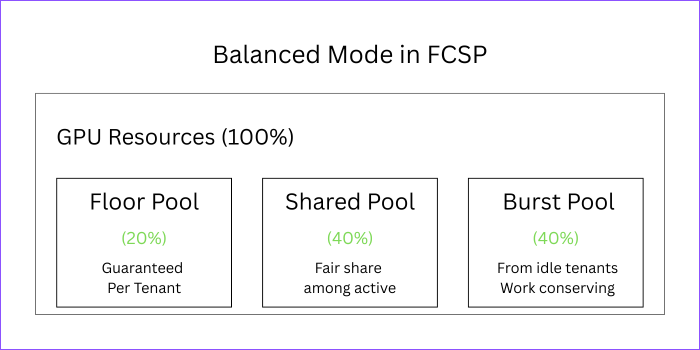- 20% floor + 40% shared pool + 40% burst pool